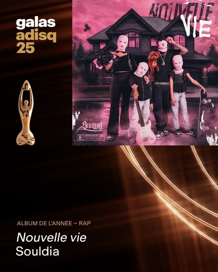 Québec, novembre 2025 – Félicitations à Souldia, Shah Frank, Clay and Friends et toute la 7EAM pour les quatre Félix reçus au Premier gala de l’Adisq hier soir! 👏 🏆